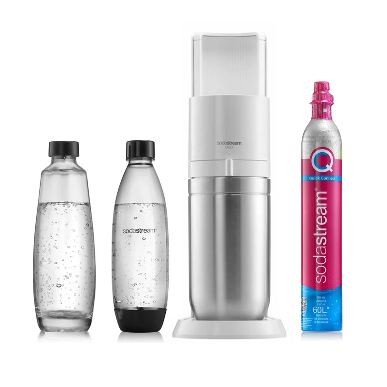 The Sodastream device DUO White turns plain water into fresh sparkling water in seconds.