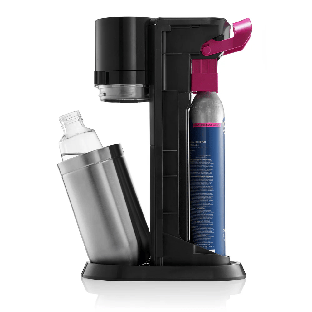Sodastream is the eco-friendly, economical and fast way to enjoy handcrafted sparkling water whenever you want it, wherever you are. The device uses a CO2 (carbon dioxide) bottle and adds carbonate to the water to turn it into sparkling water. You can use the device either for plain carbonated water, or by adding syrup to add flavor and turn it into a carbonated drink, or create unique cocktails for you and your loved ones. Learn more.