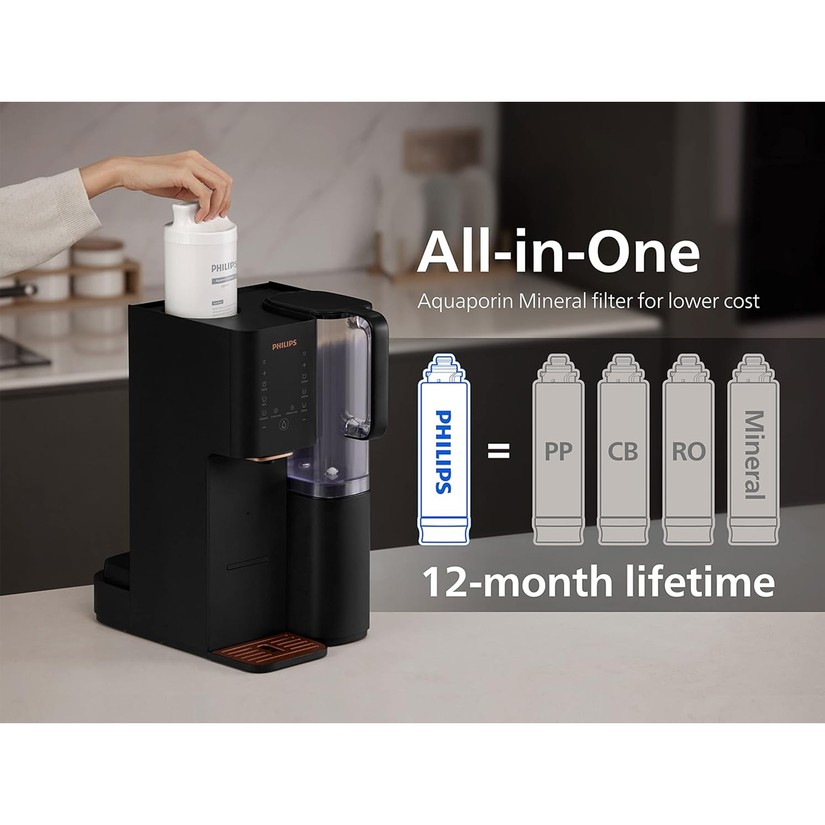 - Χωρίς BPA: Όλα τα μέρη που έρχονται σε επαφή με το νερό είναι κατασκευασμένα από υλικά χωρίς BPA, εξασφαλίζοντας την ασφάλεια του πόσιμου νερού.