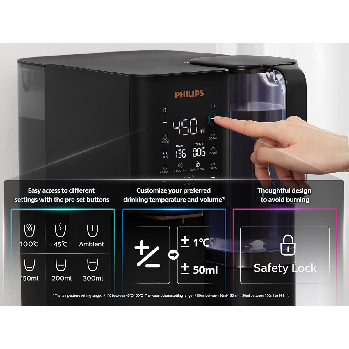 Ζήστε την εμπειρία του Philips ADD6920BK Διανομέα Νερού και ανακαλύψτε την απόλυτη άνεση και ασφάλεια στη χρήση καθαρού και ζεστού νερού.