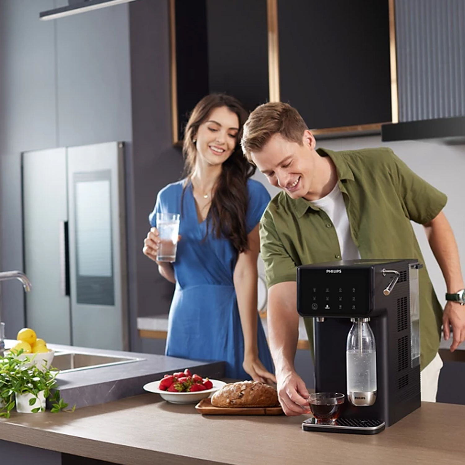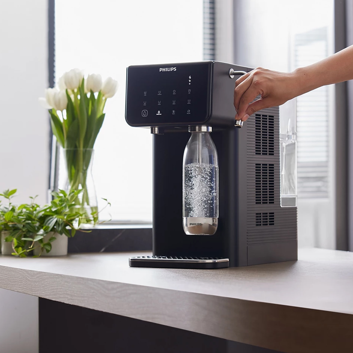 Αναβαθμίστε την καθημερινότητά σας με την εμπειρία του Philips Διανομέα Soda Maker και απολαύστε τέλεια φιλτραρισμένο, δροσερό και ζεστό νερό με άνεση και ευκολία!