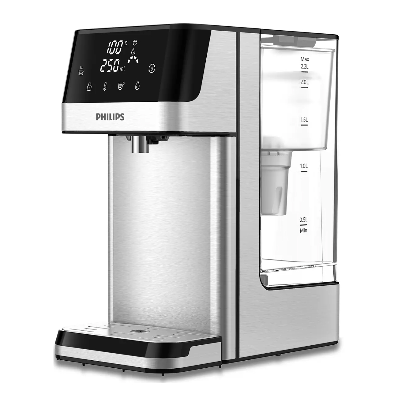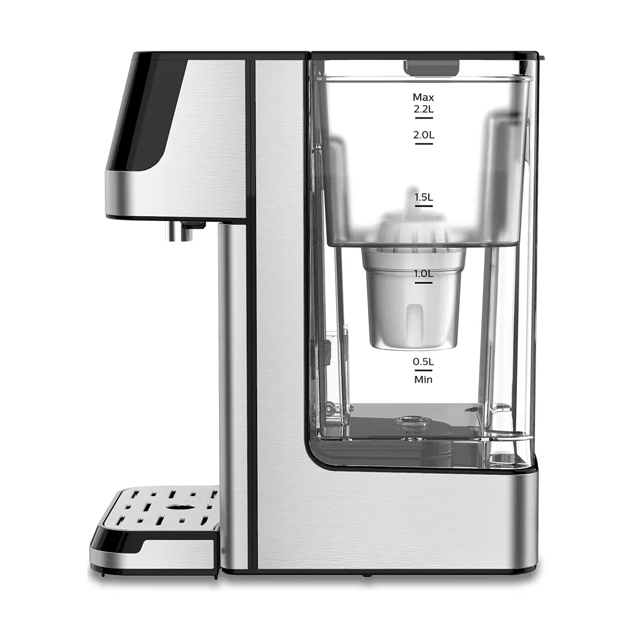 - Επιλογή Ποσότητας Νερού με Άγγιγμα: Επιλέξτε από 150ml, 250ml, 300ml, 400ml, 500ml και συνεχές ροή με ένα άγγιγμα της οθόνης. Βρείτε πάντα τη σωστή ποσότητα νερού για τα αγαπημένα σας φλιτζάνια, ακόμη και για καράφες και κατσαρόλες.