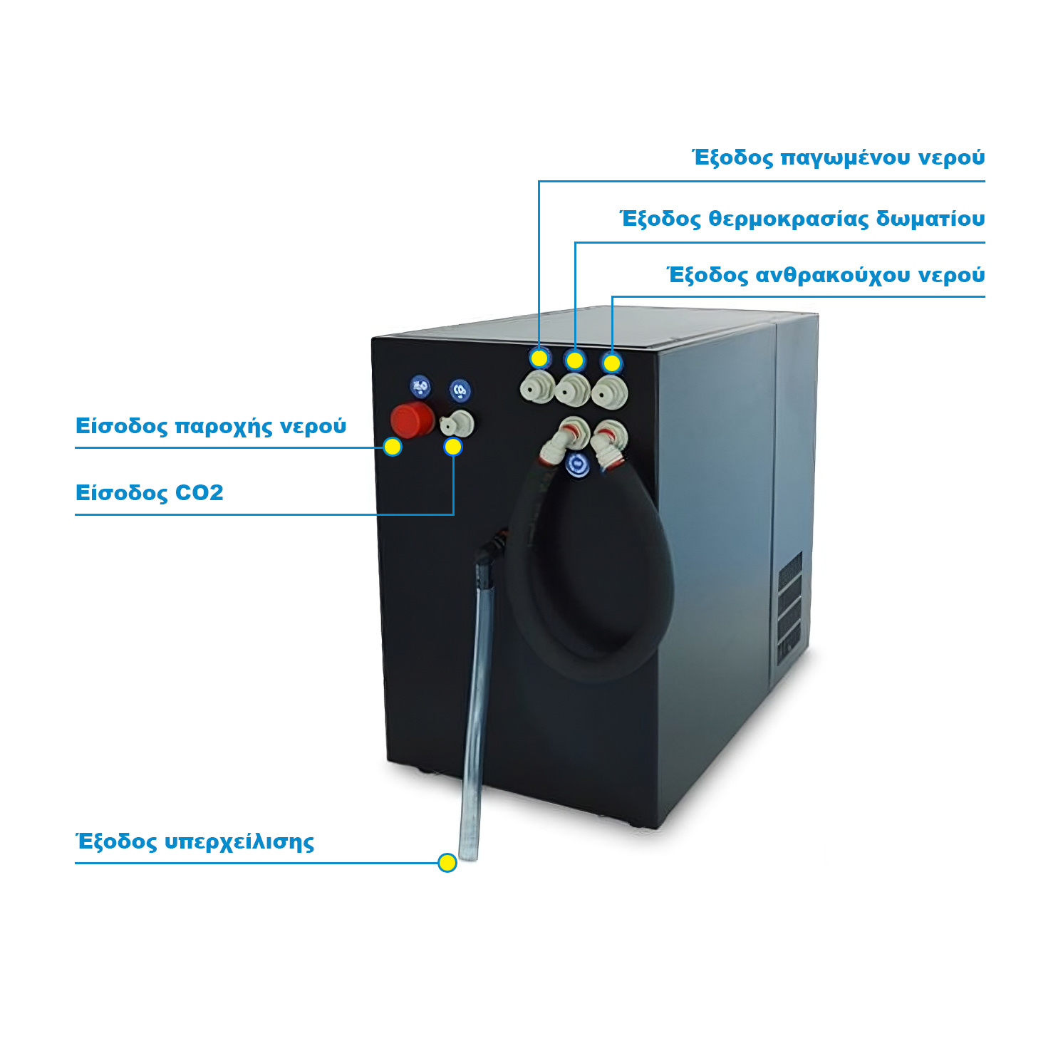 - Carbonated Water Outlet: DMfit 5/16″ push-fit