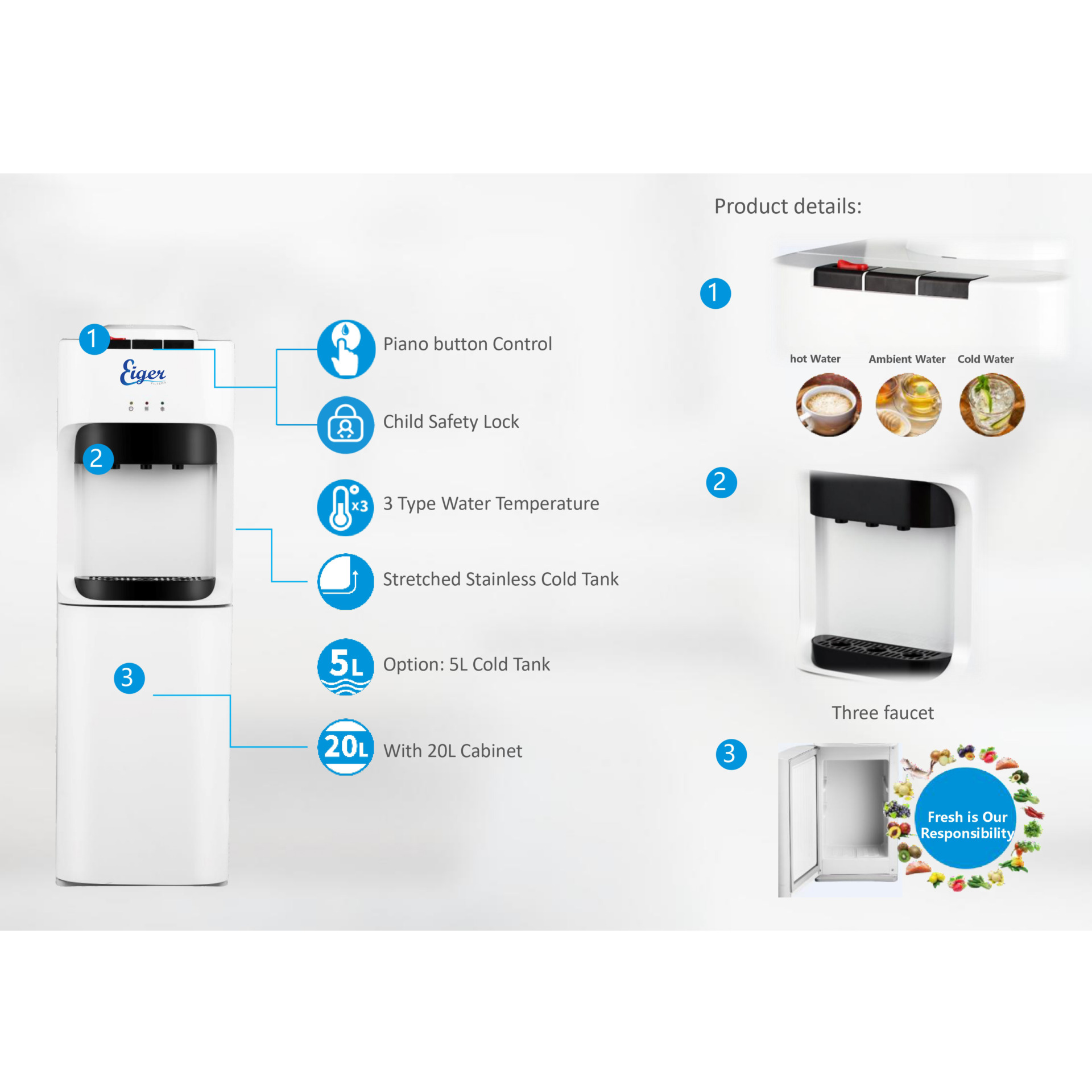Eiger water dispensers have technologically advanced compressors and offer maximum cooling performance for every need.