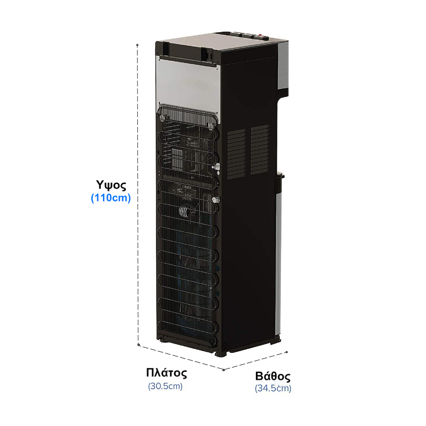The way the water dispenser works is – supplying chilled water and chilling a fresh batch of water during consumption. This means that when the water in the 3 liter internal tank gets low, the float (meter) inside it starts the pump to supply fresh water to the tank and then cools the water so that you always have fresh and cool water .
