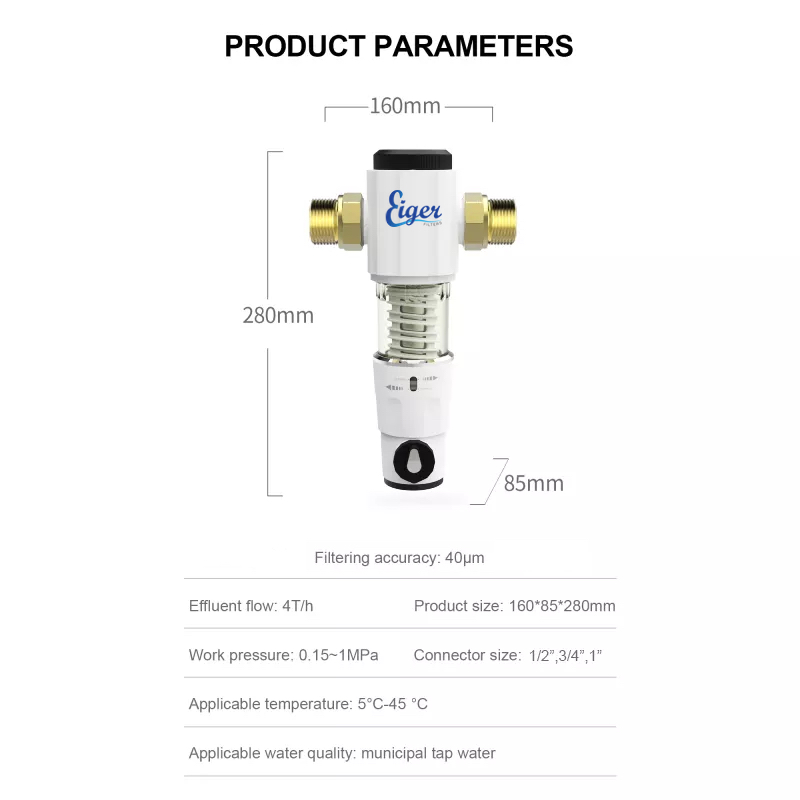 Το μοντέλο Eiger R2 είναι η καλύτερη επιλογή προφίλτρου για διαμέρισμα, επιχειρήσεις, συσκευές και αποσκληρυντες. Μπορεί να λύσει το πρόβλημα των μικροσωματίδιων και του χώματος στο σπίτι σας αλλά και της θολότητας του νερού σε αγροτική περιοχή. Υψηλή ακρίβεια φιλτραρίσματος, κατασκευή από μπλοκ σωματιδίων άμμου, λάσπης και σκουριάς. Προστατευει τους αγωγούς στο διαμέρισμα σας.