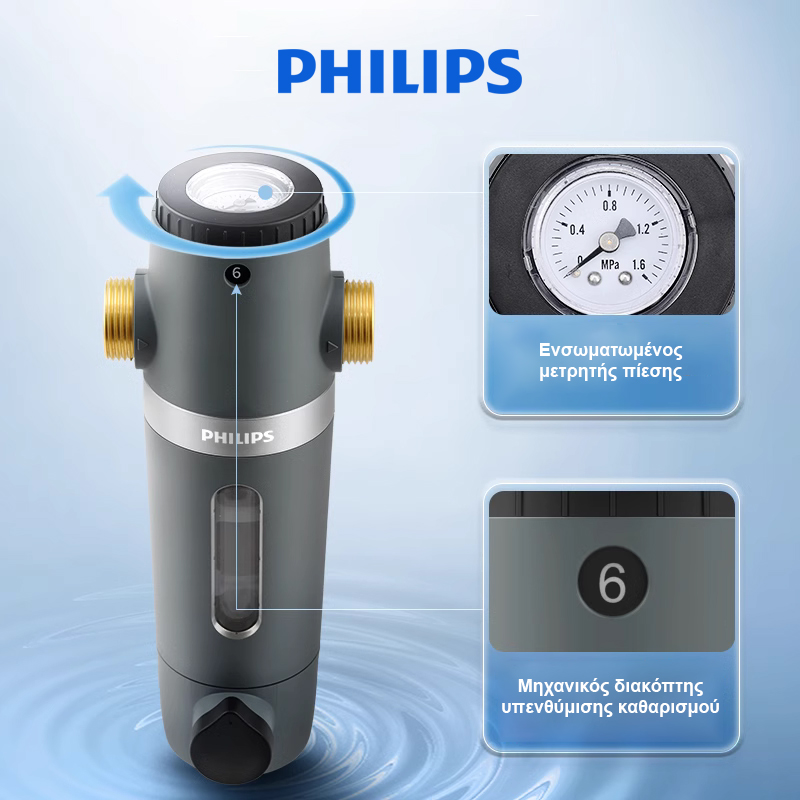 Αναβαθμίστε την ποιότητα του νερού σε όλο σας το σπίτι με το Philips AquaShield Αυτοκαθαριζόμενο Φίλτρο Νερού Κεντρικής Παροχής 3/4″ – 40 micron με Αυτόματο Flashing. Σχεδιασμένο για κορυφαία απόδοση και ελάχιστη συντήρηση, διαθέτει σύστημα αυτόματου καθαρισμού (flashing) ανά 7, 15 ή 30 ημέρες ή όποτε το επιλέξετε χειροκίνητα, διασφαλίζοντας σταθερή καθαρότητα στο φίλτρο χωρίς παρεμβάσεις.