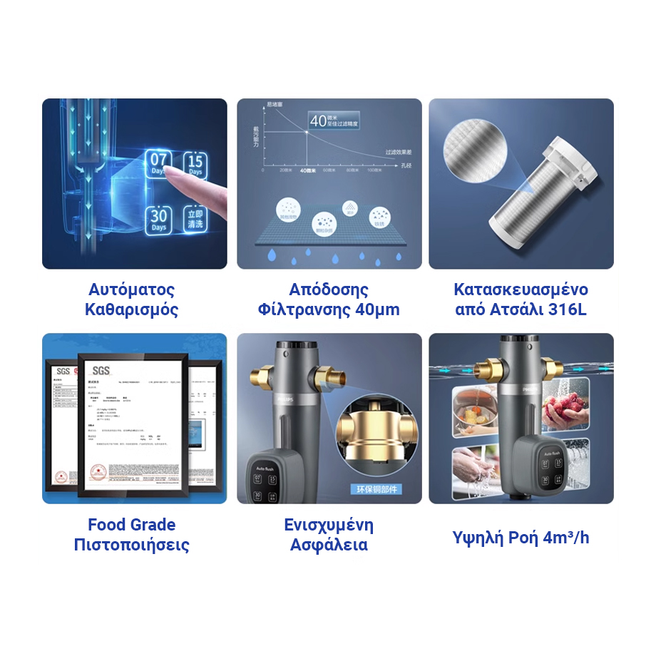 - 24/7 Προστασία Νερού: Ασφαλής παροχή νερού όλο το εικοσιτετράωρο.