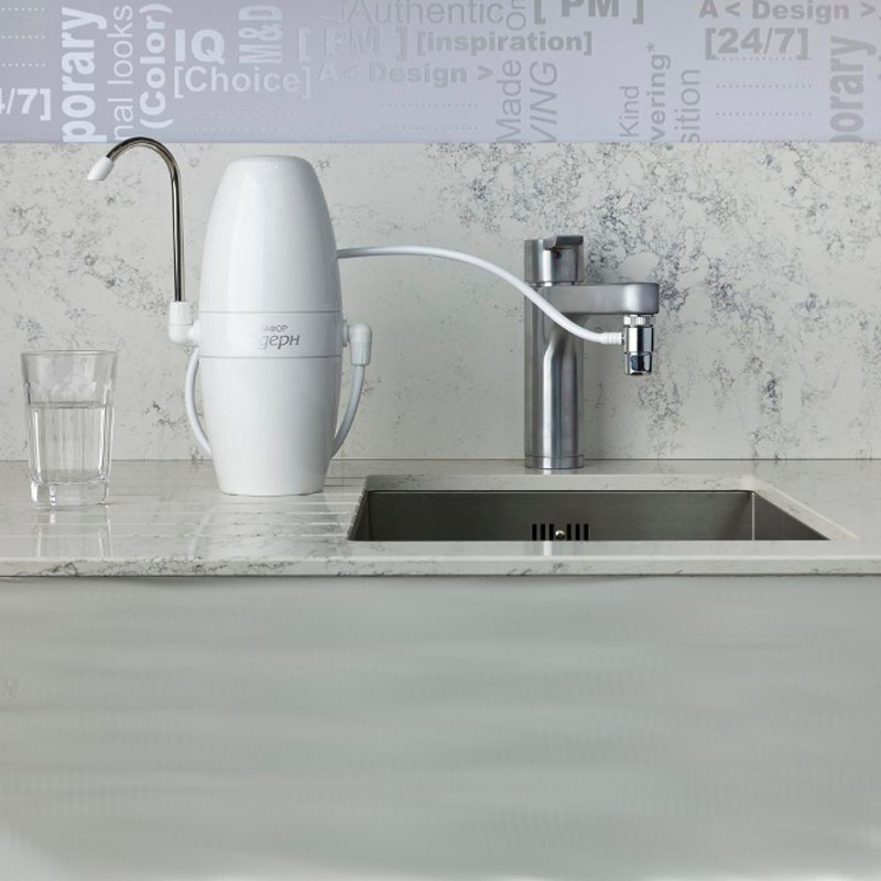 Aquaphor modern is an excellent ergonomic – compact counter top water filtration device for faucet where it can be placed on the counter top in the kitchen to give you immediate and quick access to cool and filtered water whenever you need it.