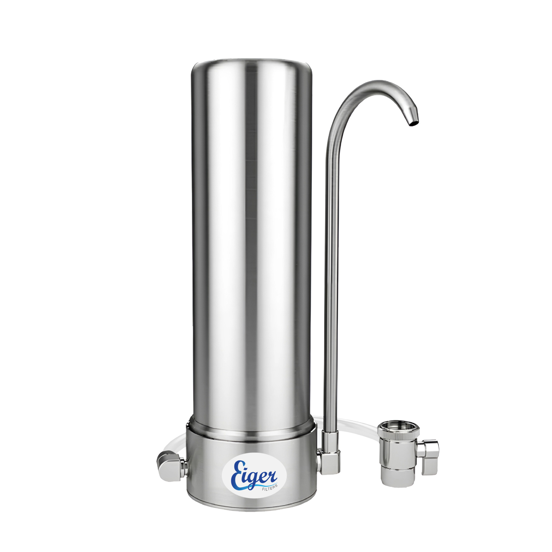 Introducing Eiger's new water filtration device with a new upgraded design made entirely of surgical grade steel for maximum long-term performance with no concern for rust and damage to its interior from micro water particles. It has an excellent stainless steel swivel faucet and a flexible tube to connect to your faucet. The filter system comes with a diverter valve that allows you to switch between filtered and straight tap water. The filter is designed to fit most faucets and an optional adapter is available for most other faucet types.