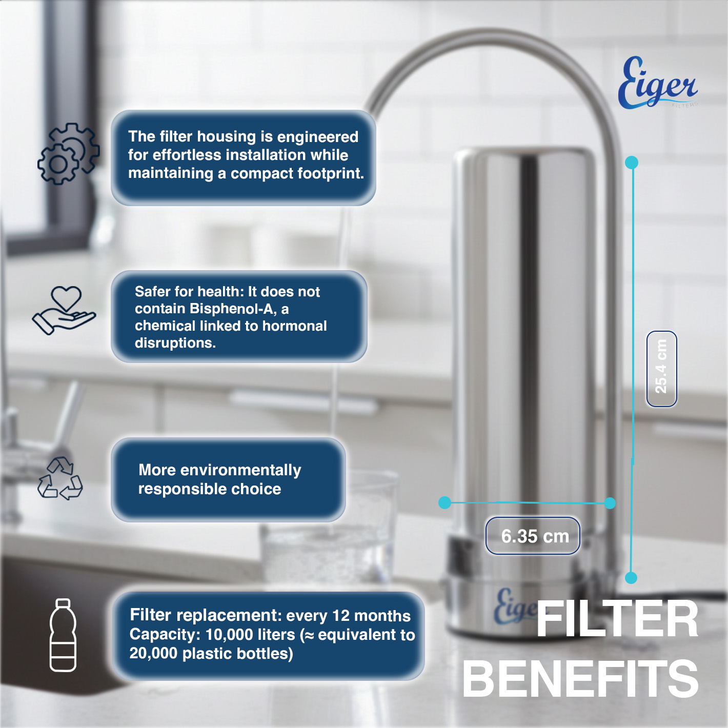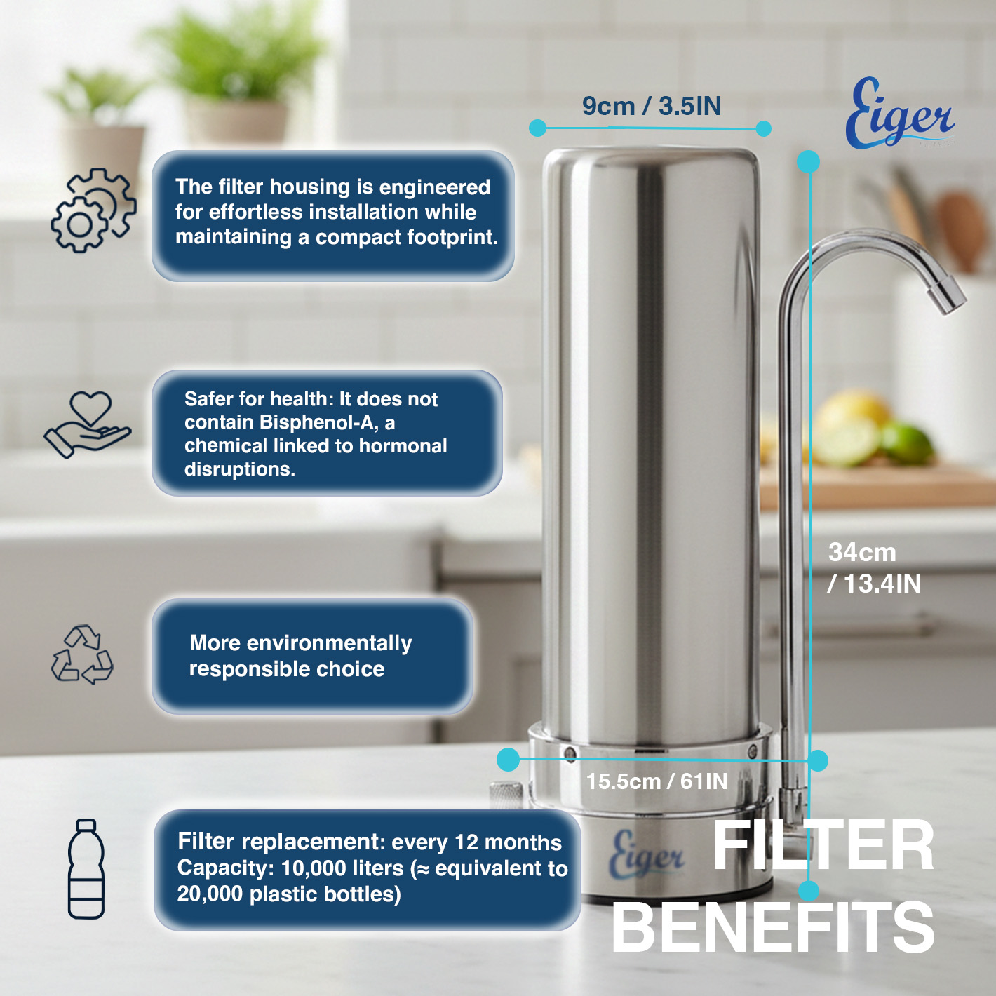 The Eiger Countertop Water Filter System is the perfect solution for those looking for a high quality filtration system that is easy to install and maintain.
