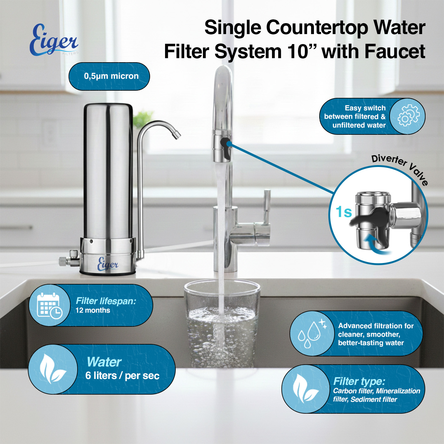 12 reviews for Eiger Ανοξείδωτη Μονή Συσκευή Φίλτρου Νερού Άνω Πάγκου με Βρυσάκι