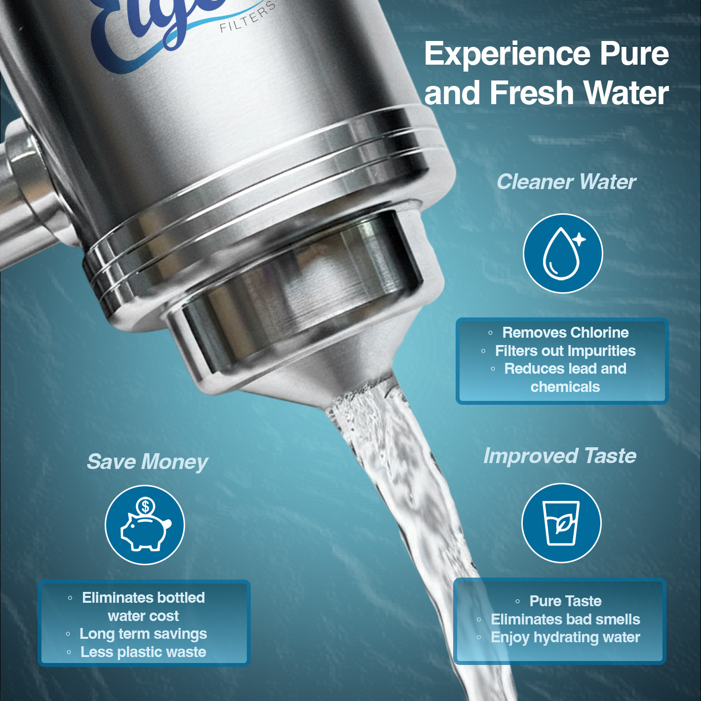 Upgrade your daily hydration with Eiger's stainless steel water filter. Experience the difference in taste and clarity as this advanced filtration system provides you with clean, clear water straight from your tap.
