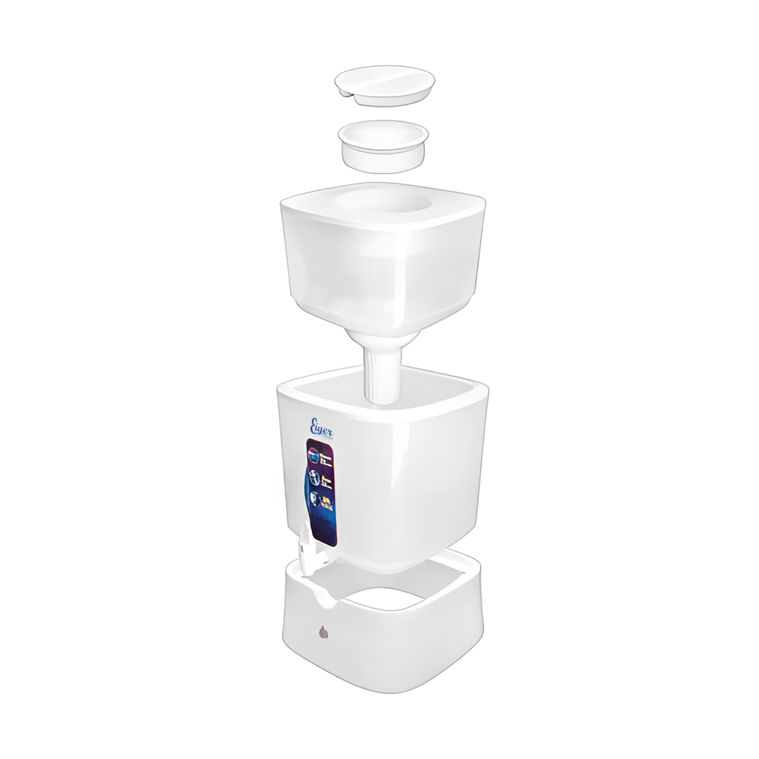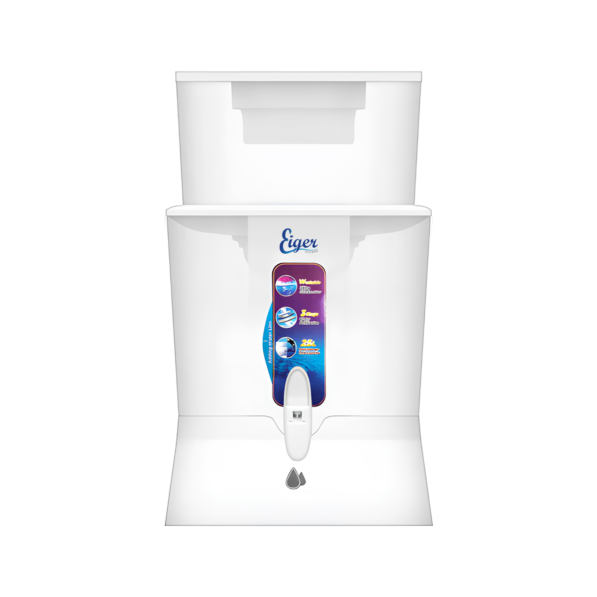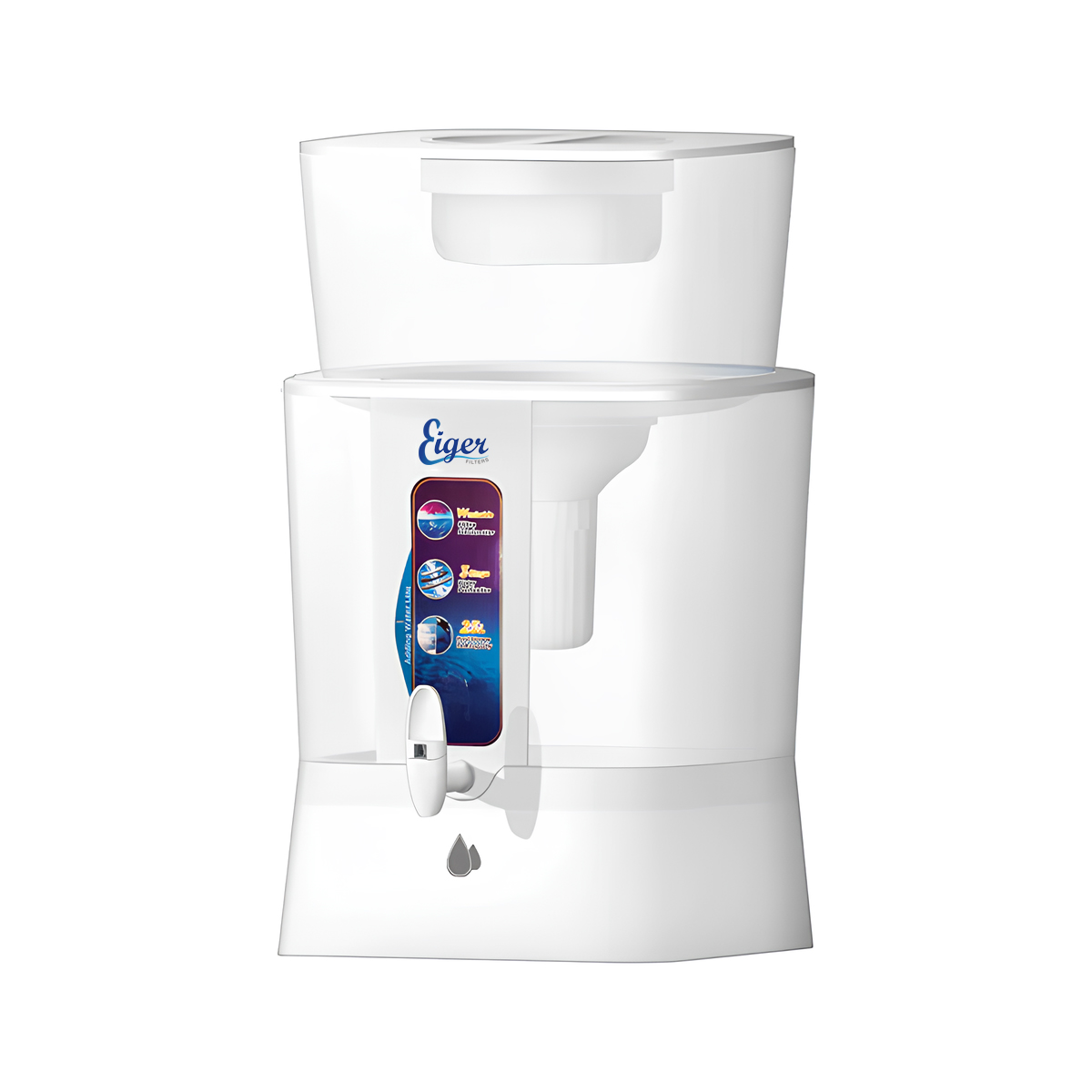 - The Eiger jug features a clever, two-part design, with separate chambers for filtering and storing water. Simply fill the upper chamber with tap water and watch the water filter effortlessly into the lower container, ready to drink.
