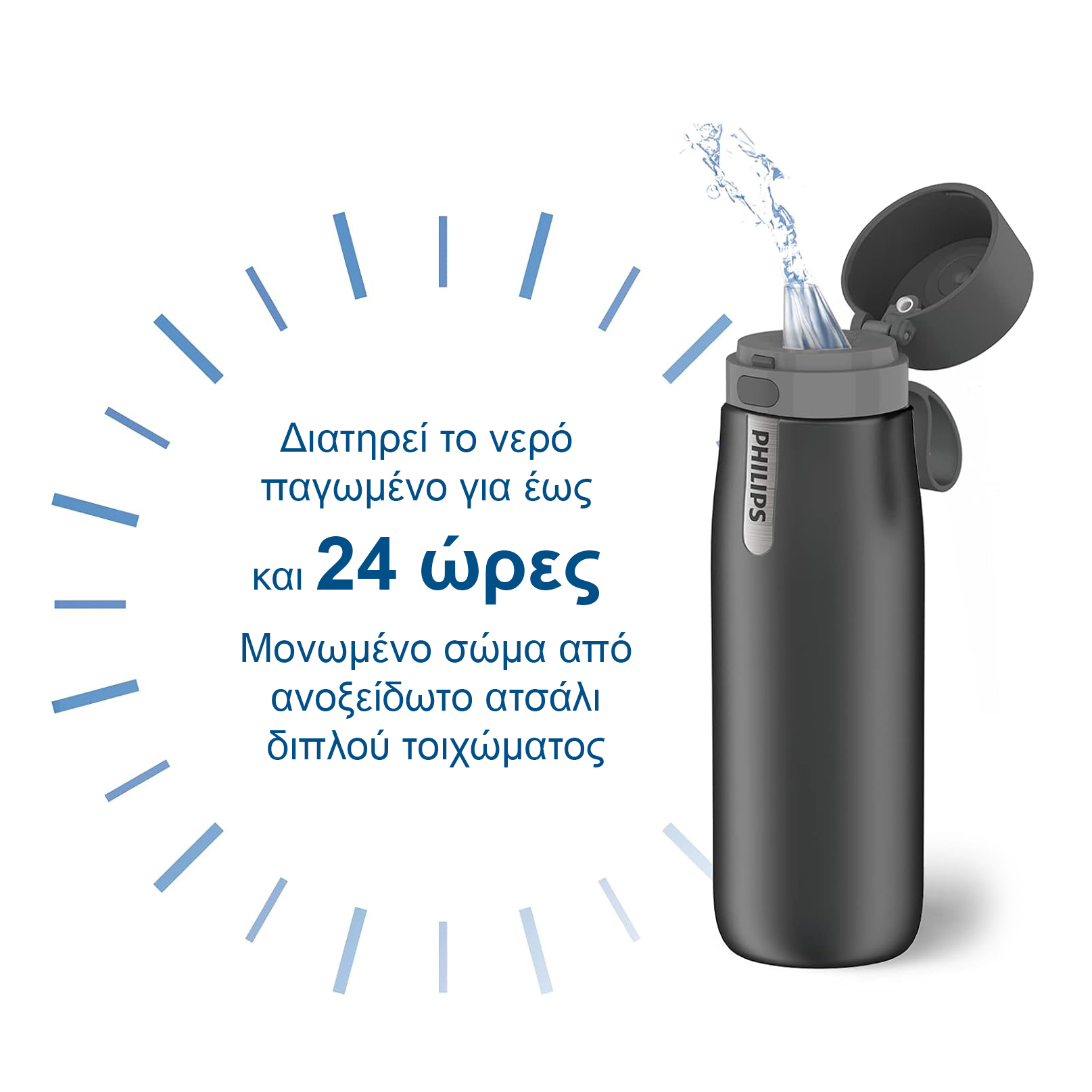 Η υγεία σας είναι προτεραιότητά μας. Το μπουκάλι Philips GoZero είναι κατασκευασμένο από ανοξείδωτο ατσάλι διπλού τοιχώματος και διαθέτει επιστόμιο σιλικόνης για εύκολη πόση.