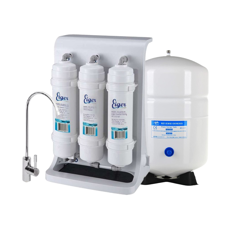 Introducing the Eiger Compact Reverse Osmosis Water Filtration System with Pump – an advanced water filtration solution that combines state-of-the-art technology with an elegant and space-saving design. This compact reverse osmosis system is equipped with a 3 liter tank and a stylish faucet, providing you with clean water whenever you need it.