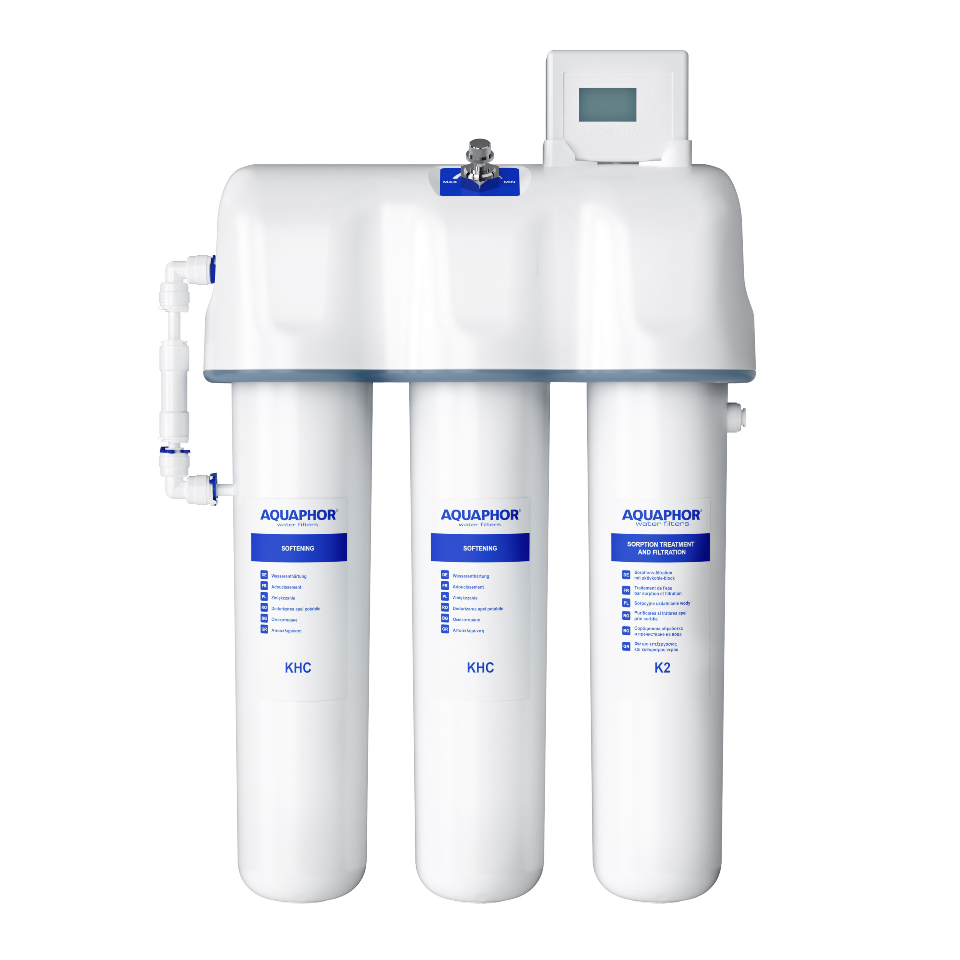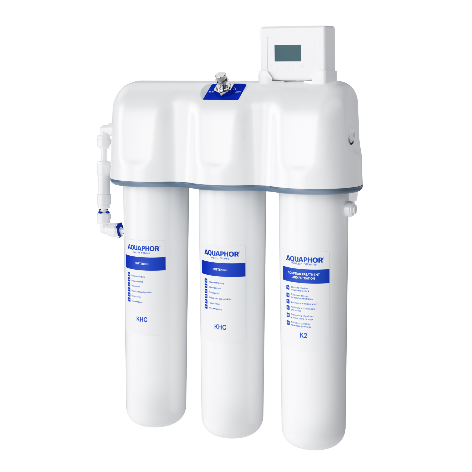 - Flowmeter με οθόνη για άμεση παρακολούθηση της κατανάλωσης και της λειτουργίας του φίλτρου.